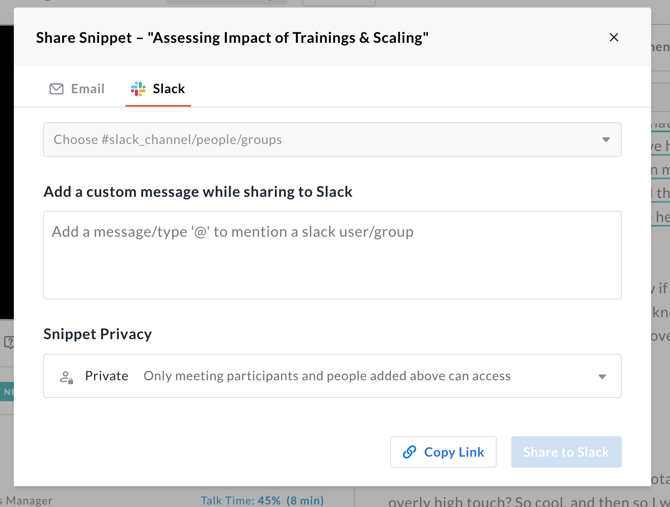 - Tag teammates in Slack when sharing relevant snippets or full meetings to ensure they’re looped in quickly