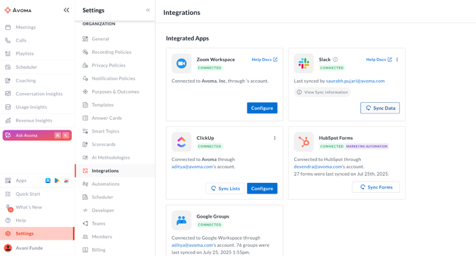 Before you can share, your Avoma Admin needs to set up the Slack integration: